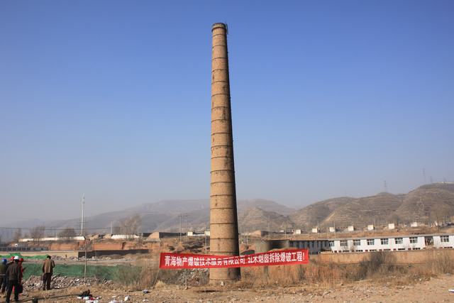 青海物产爆破技术服务有限公司51米烟囱拆除爆破工程圆满成功