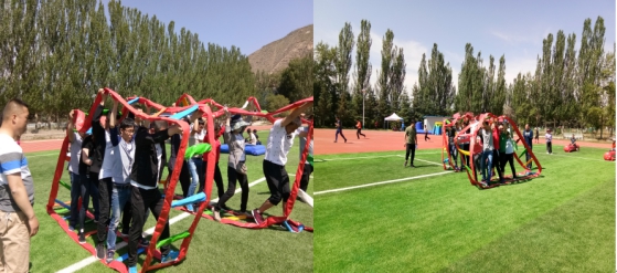 通过系列游戏导入拓展理念,同时建立团队、选举队长、编队歌、取队名、定队训、绘队旗、做团队雕塑,做文化展示。队员在精神整装和团队建立时充满信心和激情的表现,体现出青海物产汽贸团队已整装待发、破冰起航。