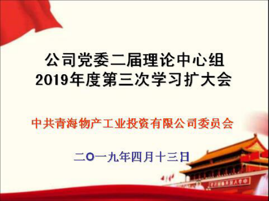 (工投公司 讯 陈伦/文 潘莉/摄)2019年4月13日上午,青海物产工业投资有限公司党委召开2019年度第三次二届党委理论中心组学习扩大会。公司党委书记、董事长、总经理张允忠同志主持会议,公司党政班子成员、中心组学习秘书、公司全体党员、助理以上中层管理人员、职能部室全体职工以及入党积极分子共计50余人参加会议。