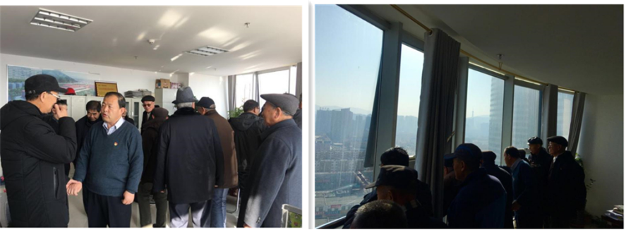 会前,离退休老党员一同来到13楼"登高望远"新建成的朝阳城市快速消费品仓储分拨中心,参观公司新办公场所和党建中心,感受在物产集团的带领下,由上世纪90年代的朝阳生产资料一条街发展成为现在的朝阳快速消费品仓储分拨中心的巨大变化。