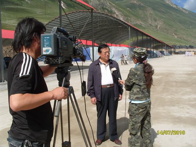 7月14日上午,青海电视台记者采访了王玉辉总经理,王总表示,青海2138cn太阳集团城已做好充分准备,愿为玉树灾后重建贡献青海物产人的一份力量,同时,就集散中心的建设规模和重建物资收储情况回答了记者的提问。