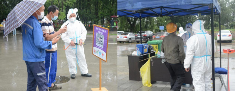 清晨,在绵绵细雨中园区新一轮区域核酸检测有序推进,核酸检测点搭起遮雨帐篷,公司广大党员干部奋勇担当冲锋在前,维护秩序、进行扫码,医护人员快速有效地采集核酸。大家上下同心、通力配合,有序高效的进行核酸检测,仅用了三个多小时就全面完成了园区人员核酸采样工作。据统计,本次核酸检测共有1103名干部职工及外租单位人员参加,检测结果全部为阴性。