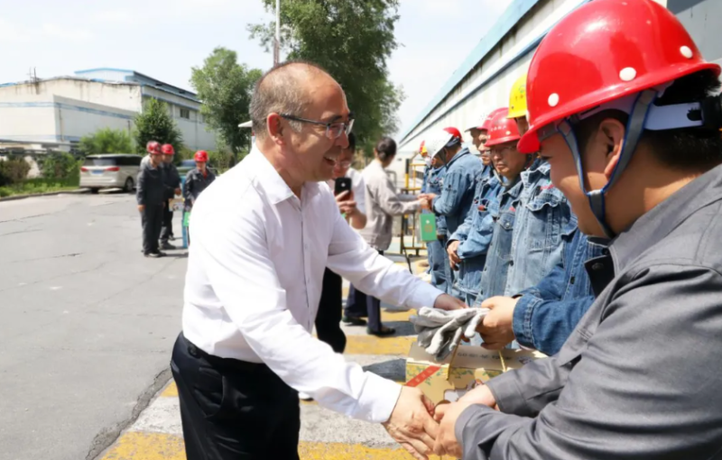 慰问现场,吴有祯与生产一线职工亲切交流,详细询问大家的工作环境、劳动保护措施及防暑降温落实情况,对职工们在高温天气下坚守岗位、辛勤付出的精神表示衷心感谢。他指出,炎炎夏日里,广大干部职工抢抓生产黄金期,不惧酷暑,挥洒汗水,用实干实绩为现代化新青海建设作出了贡献。随后,吴有祯一行将防暑降温用品送到职工手中,同时叮嘱公司负责人,要高度重视高温天气下的安全生产和职工劳动保护工作,合理调整作业时间,改善劳动条件,确保职工身体健康和生产安全。