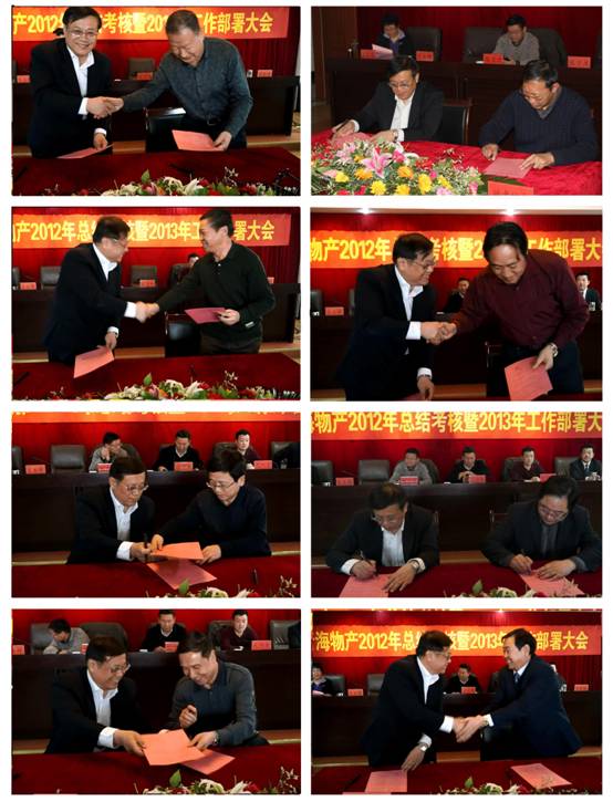 会上,由集团总经理王玉辉与所属各公司、集团各部签订2013年经营业绩目标责任书,由集团党委书记白家林与所属党委(总支)、直属党支部签订党建工作目标管理责任书、与所属各公司法定代表人签订党风廉政建设责任书。