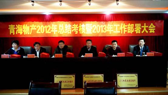 2013年1月25日,集团总公司在集团一号会议室召开"青海物产2012年总结考核暨2013年工作部署大会"。集团领导,集团中层干部,受表彰的先进个人、职工代表及退休干部代表参加会议,省国资委领导张守杰带领考核小组莅临大会。